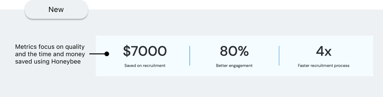 Moving on, I included a 'How It Works' section to answer: how Honeybee is beneficial to your job compared to the status quo of recruitment methods.
