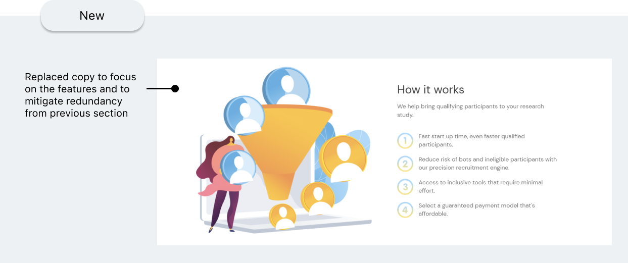 I updated the copy in the subsequent sections to only include what researchers and sponsors care most about when it comes to clinical trials - whether they can recruit qualifying participants before their deadline.